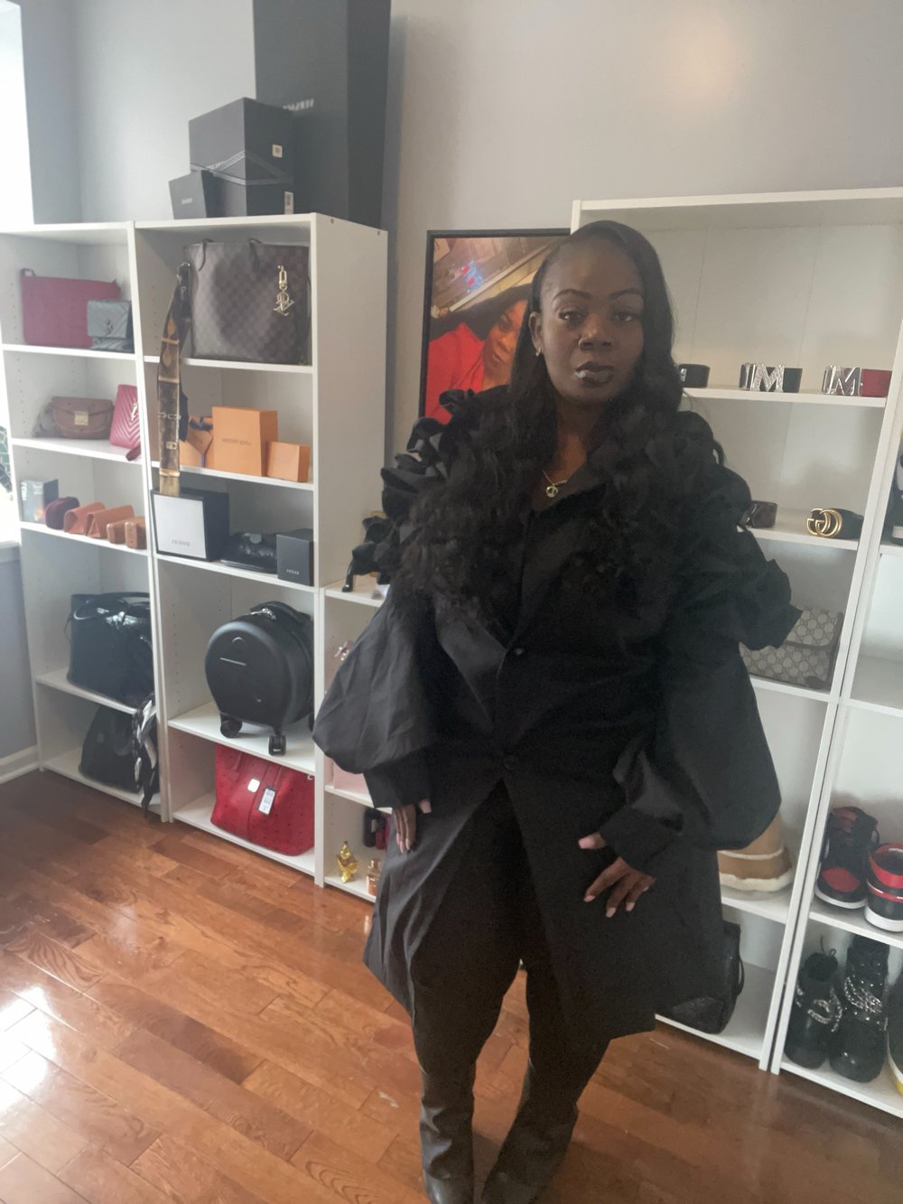 FLORAL SLEEVE TRENCH COAT (BLACK)